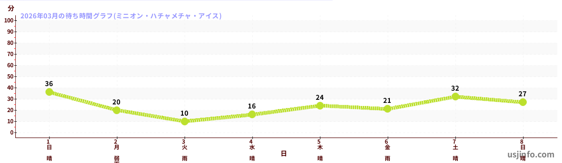 • ミニオン・ハチャメチャ・アイス$B$N(B2026年03月01日のの一日平均待ち時間