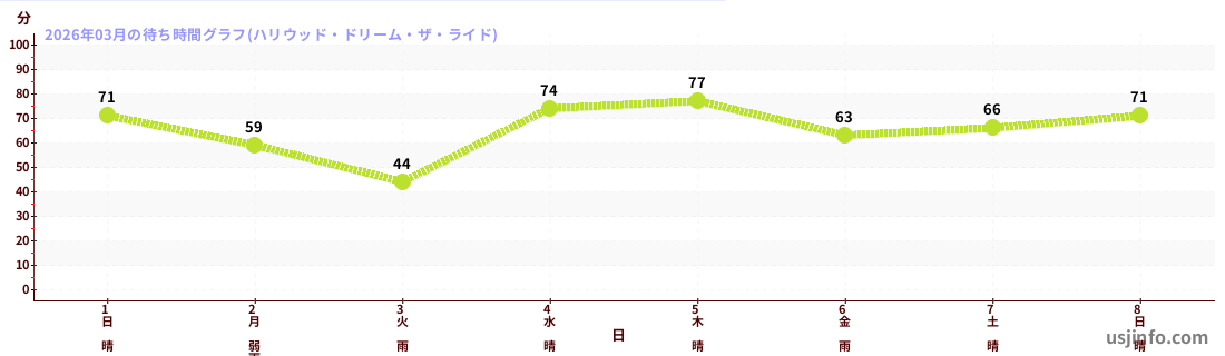 • ハリウッド・ドリーム・ザ・ライド$B$N(B2026年03月01日のの一日平均待ち時間