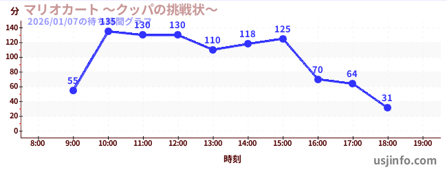 • マリオカート ~クッパの挑戦状~$B$N(B2026年01月07日の待ち時間