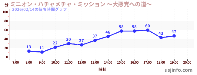 • ミニオン・ハチャメチャ・ミッション ~大悪党への道~$B$N(B2026年02月14日の待ち時間