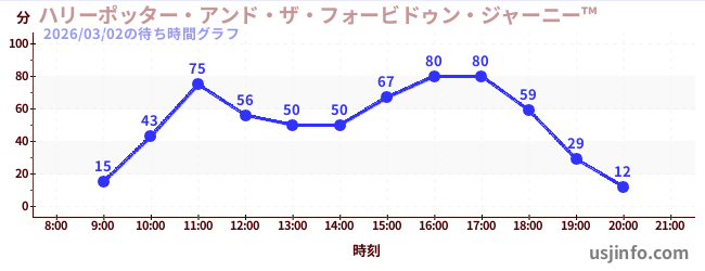 • ハリーポッター・アンド・ザ・フォービドゥン・ジャーニー™$B$N(B2026年03月02日の待ち時間