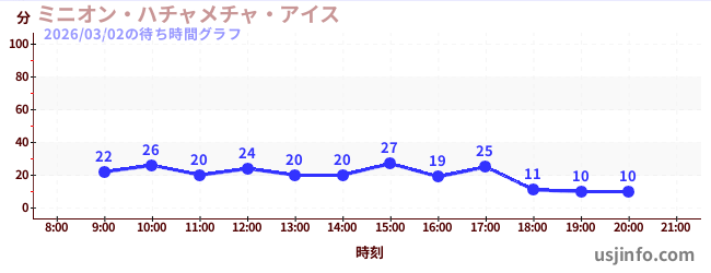 • ミニオン・ハチャメチャ・アイス$B$N(B2026年03月02日の待ち時間