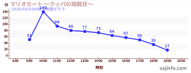 • マリオカート ~クッパの挑戦状~$B$N(B2026年03月03日の待ち時間