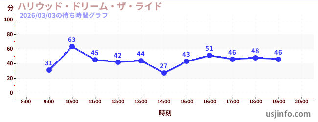 • ハリウッド・ドリーム・ザ・ライド$B$N(B2026年03月03日の待ち時間