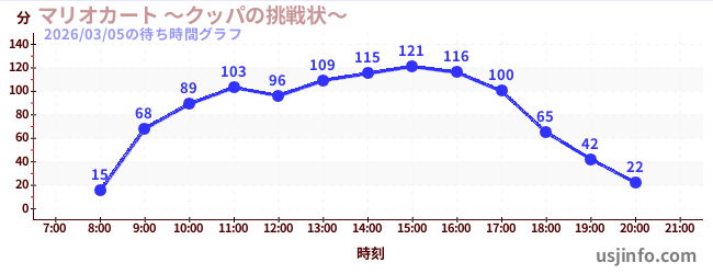 • マリオカート ~クッパの挑戦状~$B$N(B2026年03月05日の待ち時間