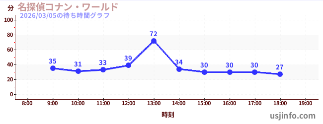 • 名探偵コナン・ワールド$B$N(B2026年03月05日の待ち時間