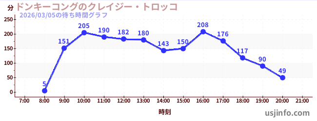 • ドンキーコングのクレイジー・トロッコ$B$N(B2026年03月05日の待ち時間
