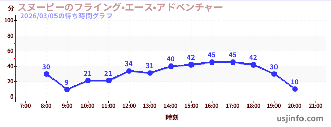 • スヌーピーのフライング•エース•アドベンチャー$B$N(B2026年03月05日の待ち時間