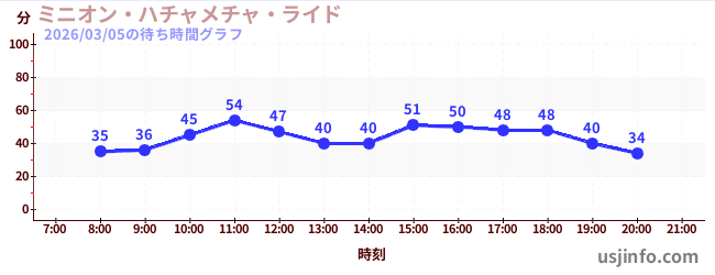 • ミニオン・ハチャメチャ・ライド$B$N(B2026年03月05日の待ち時間