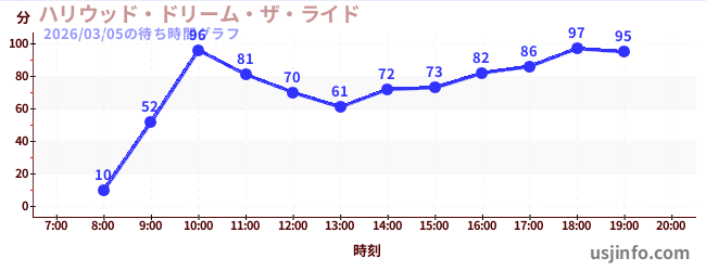 • ハリウッド・ドリーム・ザ・ライド$B$N(B2026年03月05日の待ち時間