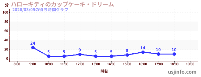 • ハローキティのカップケーキ・ドリーム$B$N(B2026年03月09日の待ち時間