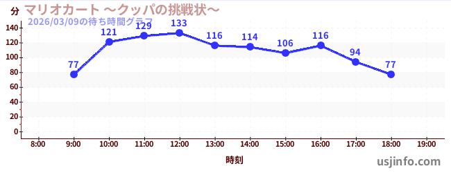 • マリオカート ~クッパの挑戦状~$B$N(B2026年03月09日の待ち時間