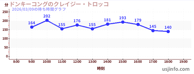 • ドンキーコングのクレイジー・トロッコ$B$N(B2026年03月09日の待ち時間