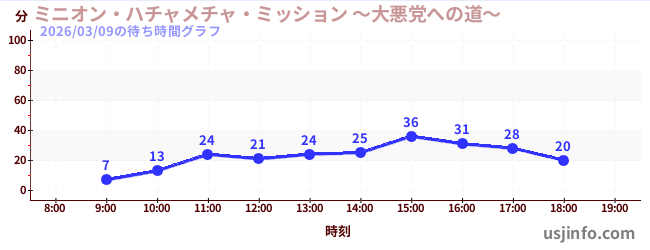 • ミニオン・ハチャメチャ・ミッション ~大悪党への道~$B$N(B2026年03月09日の待ち時間