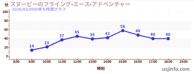• スヌーピーのフライング•エース•アドベンチャー$B$N(B2026年03月09日の待ち時間