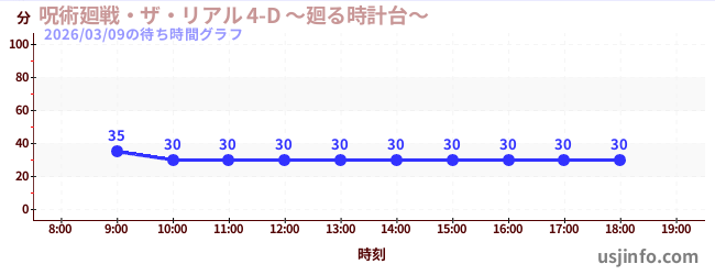 • 呪術廻戦・ザ・リアル 4-D ~廻る時計台~$B$N(B2026年03月09日の待ち時間