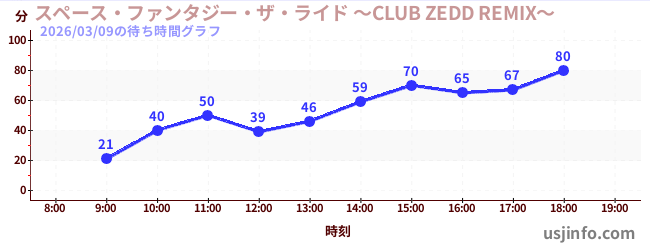 • スペース・ファンタジー・ザ・ライド ~CLUB ZEDD REMIX~$B$N(B2026年03月09日の待ち時間