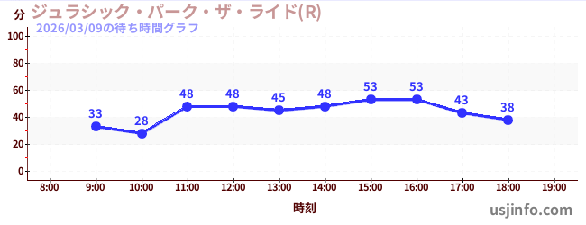 • ジュラシック・パーク・ザ・ライド(R)$B$N(B2026年03月09日の待ち時間