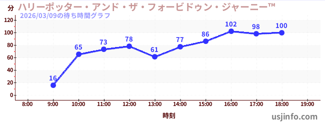 • ハリーポッター・アンド・ザ・フォービドゥン・ジャーニー™$B$N(B2026年03月09日の待ち時間