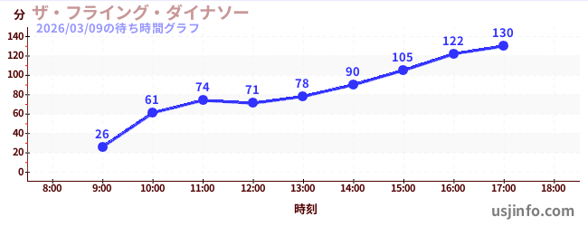 • ハリウッド・ドリーム・ザ・ライド$B$N(B2026年03月09日の待ち時間