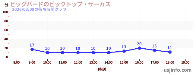 • ビッグバードのビックトップ・サーカス$B$N(B2026年03月09日の待ち時間