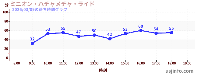 • ミニオン・ハチャメチャ・ライド$B$N(B2026年03月09日の待ち時間