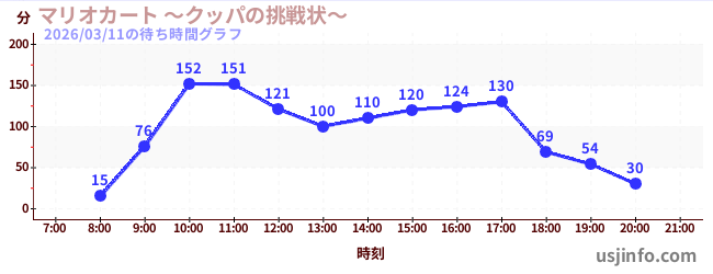 • マリオカート ~クッパの挑戦状~$B$N(B2026年03月11日の待ち時間
