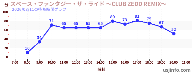 • スペース・ファンタジー・ザ・ライド ~CLUB ZEDD REMIX~$B$N(B2026年03月11日の待ち時間