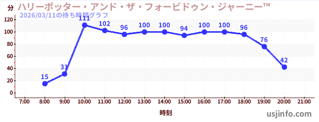 • ハリーポッター・アンド・ザ・フォービドゥン・ジャーニー™$B$N(B2026年03月11日の待ち時間