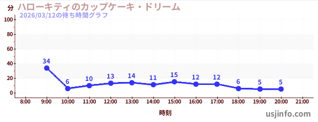 • ハローキティのカップケーキ・ドリーム$B$N(B2026年03月12日の待ち時間