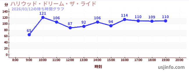 • ハリウッド・ドリーム・ザ・ライド$B$N(B2026年03月12日の待ち時間