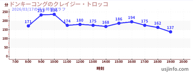 • ドンキーコングのクレイジー・トロッコ$B$N(B2026年03月17日の待ち時間