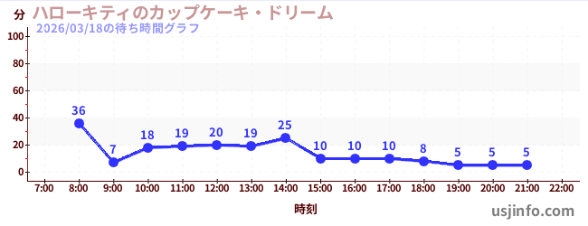 • ハローキティのカップケーキ・ドリーム$B$N(B2026年03月18日の待ち時間