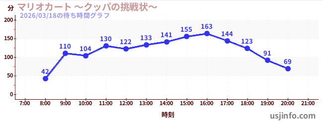 • マリオカート ~クッパの挑戦状~$B$N(B2026年03月18日の待ち時間