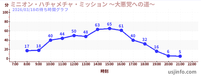 • ミニオン・ハチャメチャ・ミッション ~大悪党への道~$B$N(B2026年03月18日の待ち時間