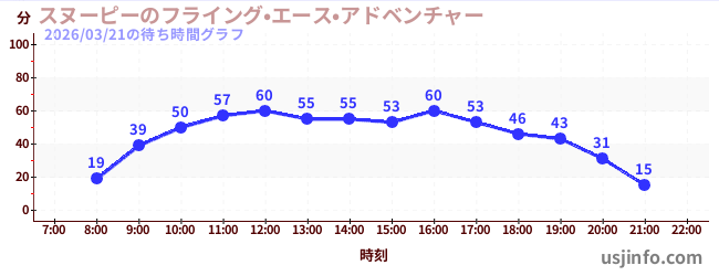 • スヌーピーのフライング•エース•アドベンチャー$B$N(B2026年03月21日の待ち時間