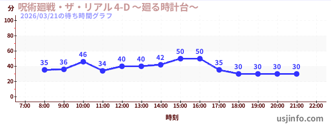 • 呪術廻戦・ザ・リアル 4-D ~廻る時計台~$B$N(B2026年03月21日の待ち時間