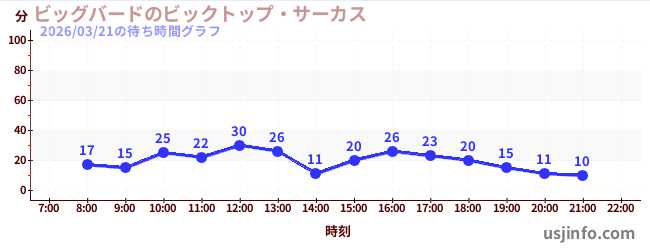 • ビッグバードのビックトップ・サーカス$B$N(B2026年03月21日の待ち時間