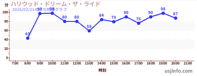 • ハリウッド・ドリーム・ザ・ライド$B$N(B2026年03月21日の待ち時間