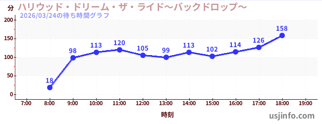 • ハリウッド・ドリーム・ザ・ライド〜バックドロップ〜$B$N(B2026年03月24日の待ち時間