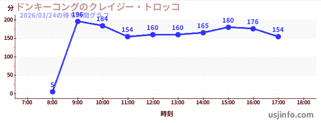 • ドンキーコングのクレイジー・トロッコ$B$N(B2026年03月24日の待ち時間