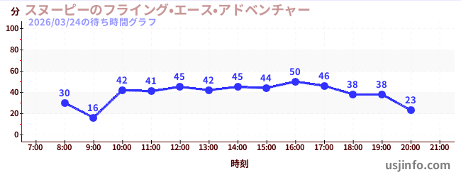 • スヌーピーのフライング•エース•アドベンチャー$B$N(B2026年03月24日の待ち時間