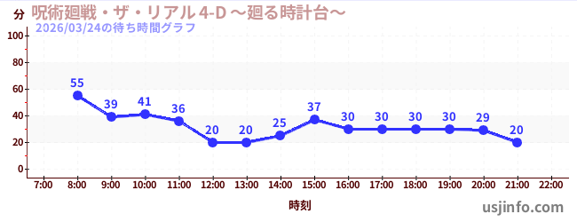• 呪術廻戦・ザ・リアル 4-D ~廻る時計台~$B$N(B2026年03月24日の待ち時間