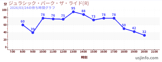 • ジュラシック・パーク・ザ・ライド(R)$B$N(B2026年03月24日の待ち時間