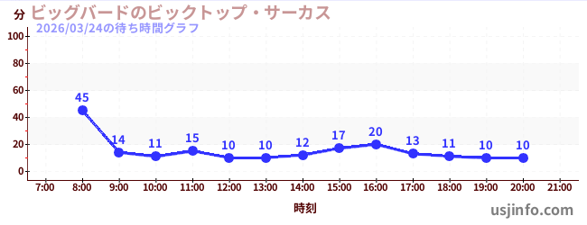 • ビッグバードのビックトップ・サーカス$B$N(B2026年03月24日の待ち時間