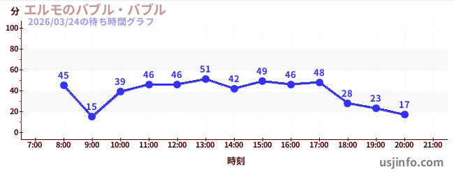• エルモのバブル・バブル$B$N(B2026年03月24日の待ち時間