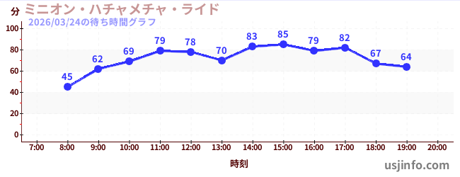 • ミニオン・ハチャメチャ・ライド$B$N(B2026年03月24日の待ち時間