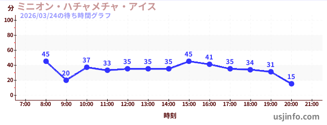 • ミニオン・ハチャメチャ・アイス$B$N(B2026年03月24日の待ち時間