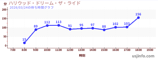• ハリウッド・ドリーム・ザ・ライド$B$N(B2026年03月24日の待ち時間