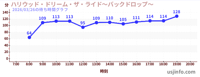 • ハリウッド・ドリーム・ザ・ライド〜バックドロップ〜$B$N(B2026年03月26日の待ち時間